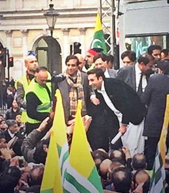 ٹرافالگر اسکوائر سے ڈاؤننگ اسٹریٹ تک کشمیریوں سے اظہار یکجہتی کے لیے ریلی نکالی گئی۔