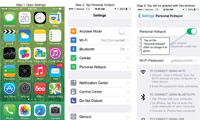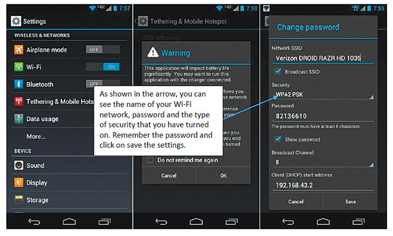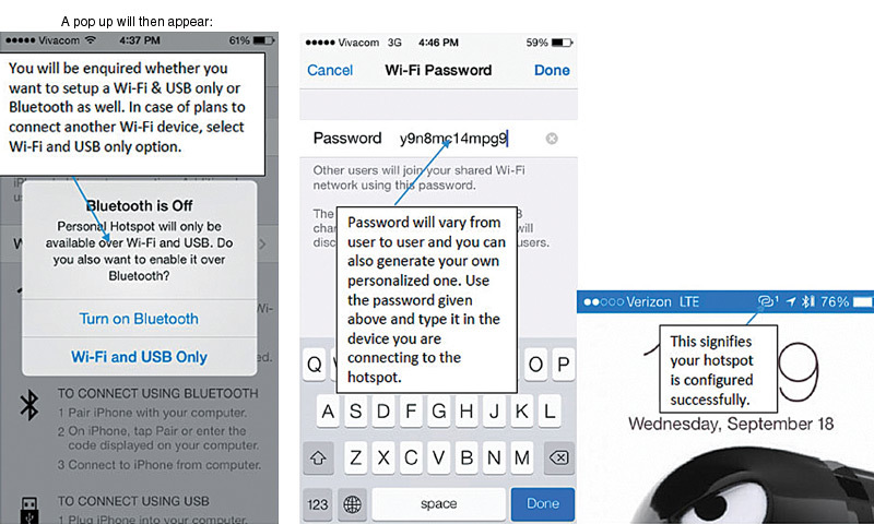 تیسرا قدم: اب آپ کامیابی سے اپنے پرسنل ہاٹ اسپاٹ کو بناچکے ہیں اور اس کو پاس ورڈ لگا کر آسانی سے لیپ ٹاپ یا ٹیبلیٹ کے ساتھ استعمال کرسکتے ہیں۔